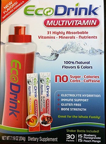 Product DescriptionEco Drink Complete Multivitamin 30 Packets(15 Blueberry Pomegranate, 15 Peach Mango) 7.19 Oz (204 G)0