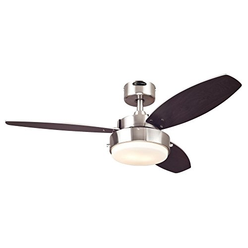 Westinghouse 7247300 Alloy Two-Light Reversible Three-Blade Indoor Ceiling Fan, 42-Inch, Brushed Nickel Finish with Opal Frosted Glass