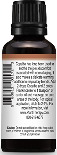 ReleaseDate : 2016-11-18 Studio : Plant Therapy Inc Publisher : Plant Therapy Inc Binding : Health and Beauty Product Description Copaiba Balsam has long been used to soothe the joint pains associated with normal aging. It makes a delicate warming addition to respiratory blends, and is a bit more gentle than stronger oils like eucalyptus. The reasons for using the oleoresin in aromatherapy are that it does less damage to the trees, and it contains more therapeutic compounds than the distilled oil. And unlike most other oleoresins, this one is oil soluble! Add 2 drops Frankincense and 2 drops Copaiba to 1 tablespoon of carrier oil and massage on sore areas of the body. Copaiba can also be to help with occasional digestive upset. Add 2 drops Copaiba essential oil to 1 teaspoon of carrier oil and massage in a clockwise direction on your abdomen to help with digestive issues. 1 drop each of copaiba, black pepper, and coriander added to 1-2 teaspoons of carrier oil or lotion makes a soothing chest rub. 0