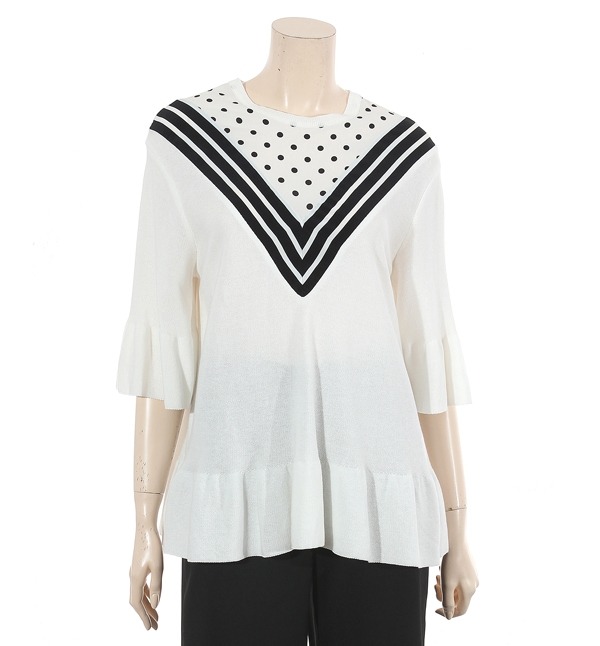 CC collect, 배색 패턴으로 포인트를준 니트 티셔츠입니다