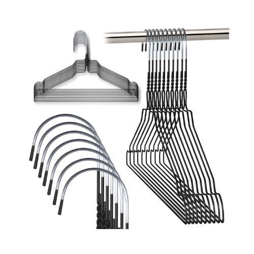 -. Feature : Pack of 25 galvanized steel metal hangers with a tough, plastic powder coated finish in black. Plain silver neck and colored tip. / 13 gauge (stronger than 13.5 or 14 ga) 16" width with shoulder notches for added versatility. Squared neck shape for better presentation of shirts etc. neck length of hanger suitable for use by dry cleaning companies. / Part of a range of metal hangers in bright and cheerful colors, useful for color coding if needed. Ideal general use hanger for shirts, blouses, trousers, skirts, dresses etc. excellent value - our best quality 13 gauge wire hangers. / Suitable for use with pants and shoulder guards.