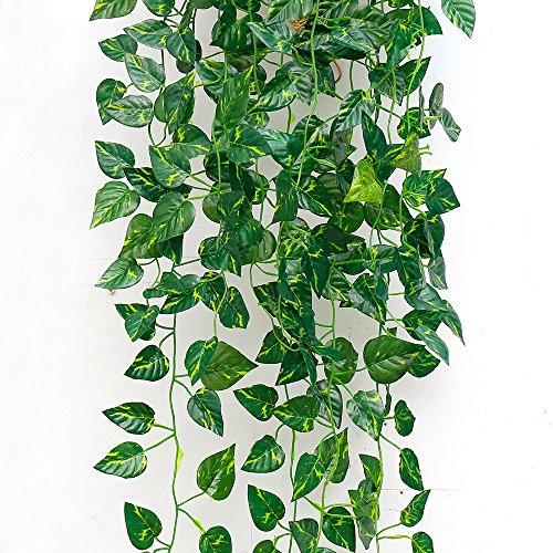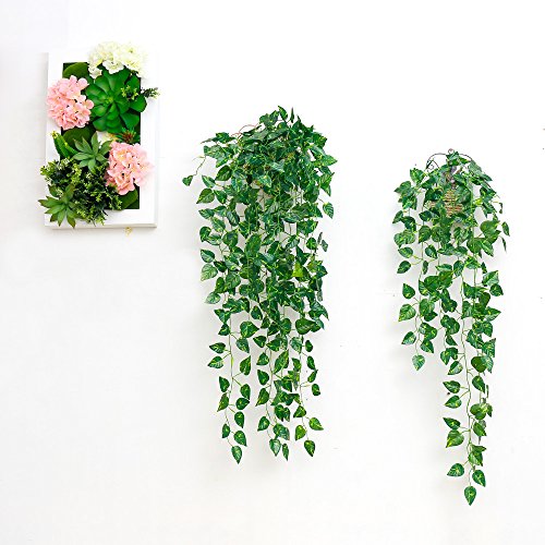 Artificial Plants Vine Fake Green leaves Ivy Leaf Garland Green Leaf Garland For Home Wall Decoration Pack of 2 (Ivy Leaves)