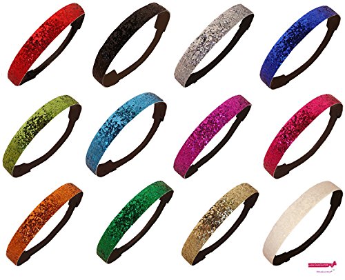- 12 Glitter Headband ALL Colors by Kenz Laurenz® - Elastic Stretch Sparkly Headbands for Teens Girls Women Softball Volleyball Basketball Sport Teams Set Pack Store
