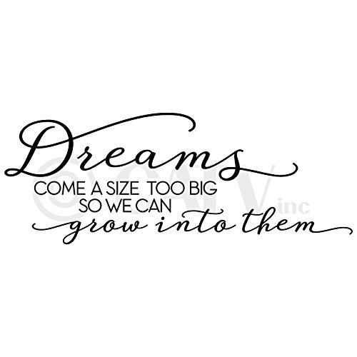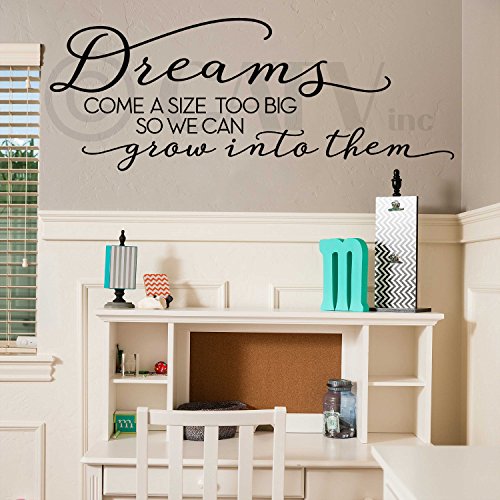 -. Binding : Kitchen -. Brand : Wall Sayings Vinyl Lettering -. Color : Black -. Feature : Two sizes 12.5" H x 33" L and 16.5" H x 43" L - 631 Oracal Vinyl / Can be applied to most walls including textured, or any craft project with wood, metal, etc. / Comes with easy to apply instructions and can be removed without damaging walls / Great way to add some fun to any bedroom or craft on a budget! / ONLY made by Wall Sayings Vinyl Lettering in the USA. We do not sell to other vendors!! -. IsAutographed : 0 -. Label : Wall Sayings Vinyl Lettering -. Manufacturer : Wall Sayings Vinyl Lettering -. PackageQuantity : 1 -. ProductGroup : Home -. ProductTypeName : HOME -. Publisher : Wall Sayings Vinyl Lettering -. Size : 10x6 -. Studio : Wall Sayings Vinyl Lettering -. Title : Dreams come a size too big so we can grow into them vinyl wall decal sticker (Black)