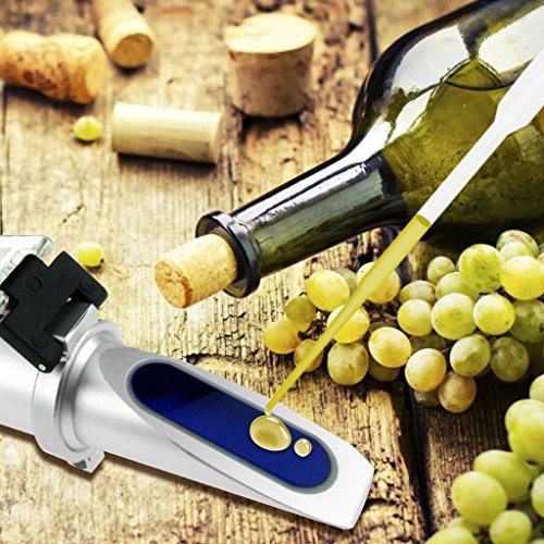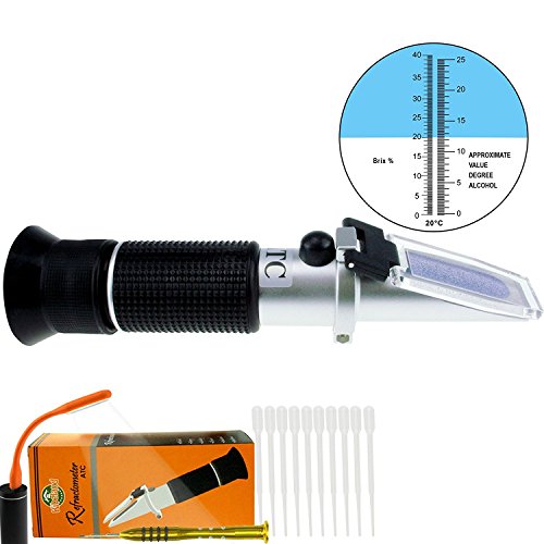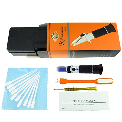 Kibeland Alcohol Wine Refractometer with ATC, Dual Scale, 0~25% Alcohol, 0~40% Brix, Wine Making, Beer Making, Home Brewing, with EXTRA Mini USB Light