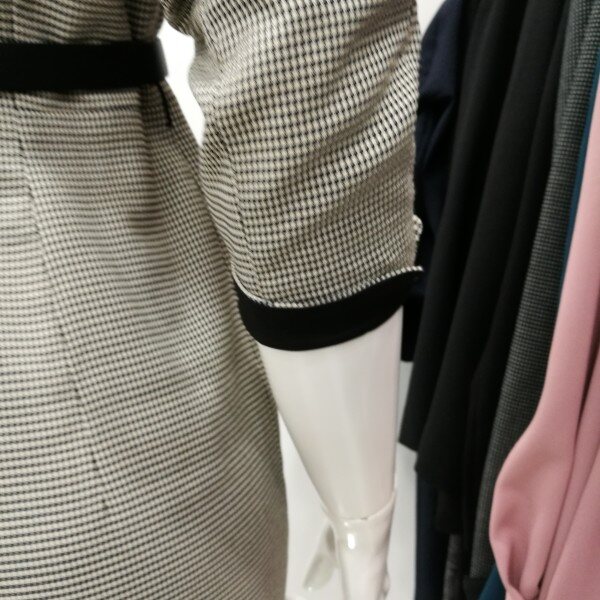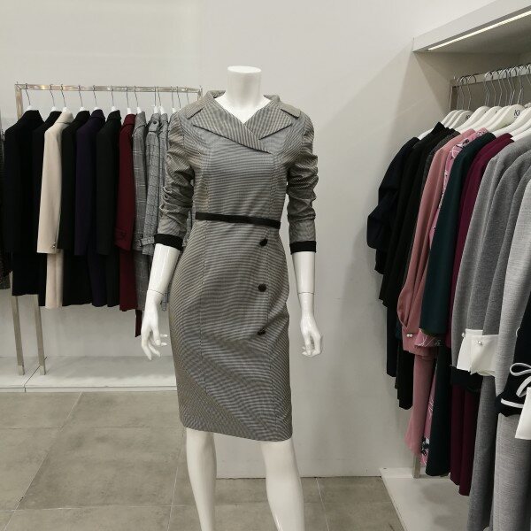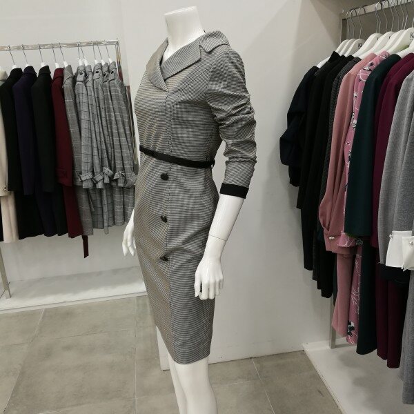 잔체크라 고급스러우며 카라부분이 여성스럽게 디자인되었고 입은핏이 아주 예쁘게 떨어진다.