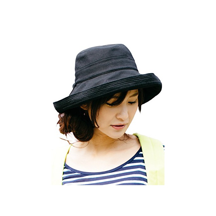 원본상품명: ブラックa (オリエントハット)Orient Hat リボン 大人 カプリヌ ハット コットン きつば つばハット レディス 日よけ UVカット 折りたたみ 中折れ 帽子 女優帽 わら帽子