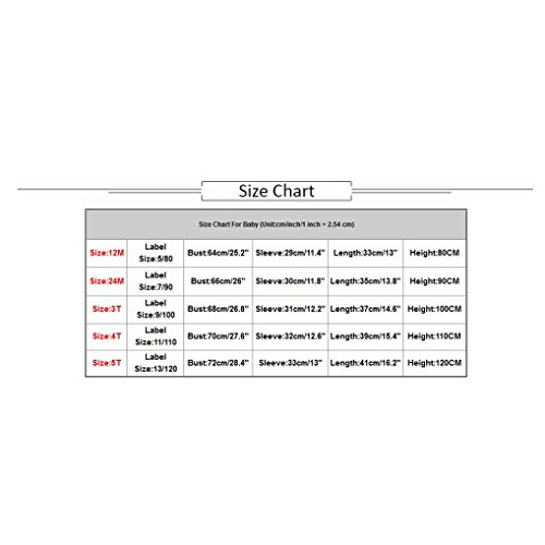 Size Details: Size:12M Label Size:5/80 ? ? ?Bust:64cm/25.2" ?Sleeve:29cm/11.4" ?Length:33cm/13" ? ?Height:80CM Size:24M Label Size:7/90 ? ? ?Bust:66cm/26" ? ? Sleeve:30cm/11.8" ?Length:35cm/13.8" ?Height:90CM Size:3T ? ?Label Size:9/100 ? ?Bust:68cm/26.8" ?Sleeve:31cm/12.2" ?Length:37cm/14.6" ?Height:100CM Size:4T ? ?Label Size:11/110 ?Bust:70cm/27.6" ?Sleeve:32cm/12.6" ?Length:39cm/15.4" ?Height:110CM Size:5T ? ?Label Size:13/120 ?Bust:72cm/28.4" ?Sleeve:33cm/13" ? ? Length:41cm/16.2" ?Height:120CM About Commodities:? ★1. There may be a little difference of the color between the picture and the real goods because of the pixel. We hope you can understand sincerely. ★2. Please allow slight deviation for the color and measurement. Thanks. ★3. The goods will be delivered to you about18-25 days, if you need it in urgency you can choose DHL, the delivery time is 3-5 days. Please contact us if you have question about the delivery ★4.My store updates often, you are welcome to visit here at any time. ? 0 |