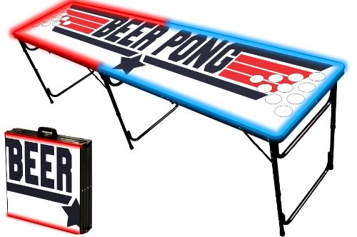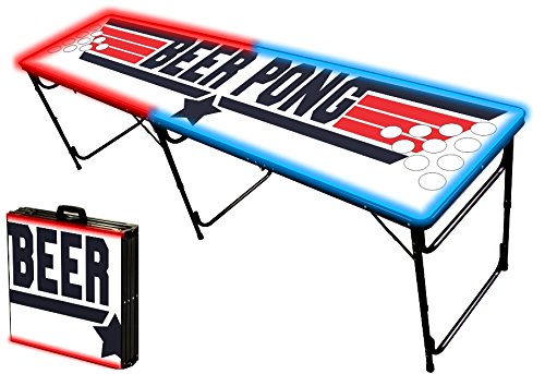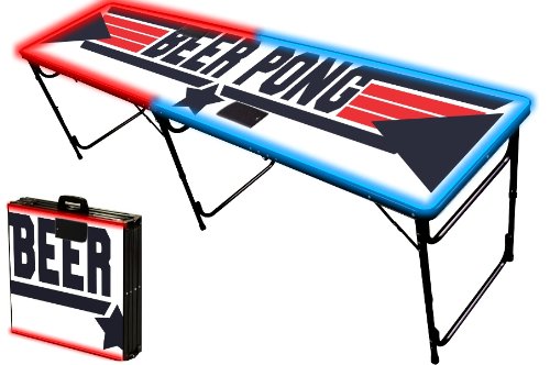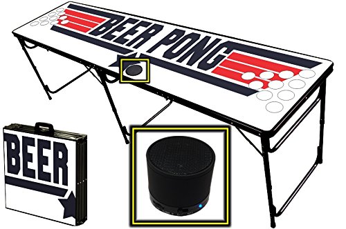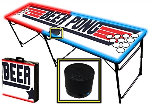 | (PartyPongTables.com)/Game Room/Table Games/DIRECT FROM USA/8-Foot Professional Beer Pong Table w/ Optional Lights, Bluetooth Speaker Holes - Top Pong Graphic |