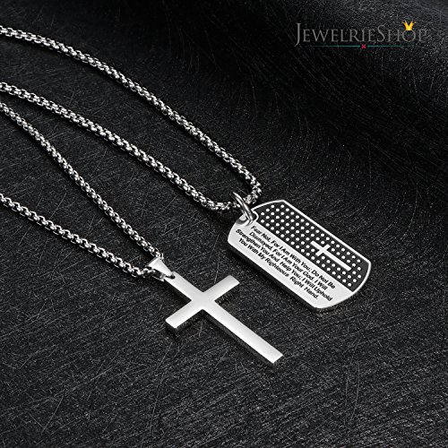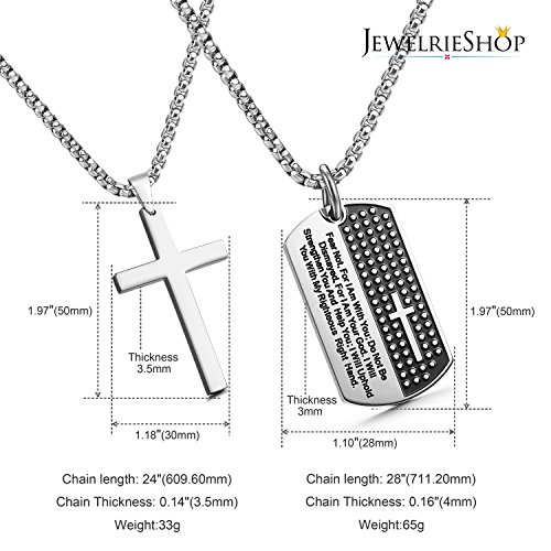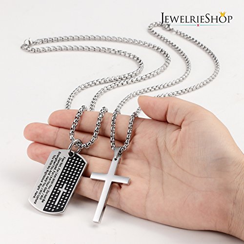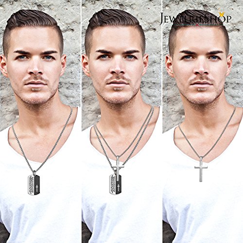 -. Binding : Jewelry -. Brand : JewelrieShop -. Department : mens -. Feature : STAINLESS STEEL NECKLACE FOR MEN: 24 inches and 28 inches chain length; 1.97 inches pendant height; 1.10-1.18 inches pendant width. Secure Lobster Claw Clasp. Optimum Pendant Size. Shiny Color. Two chain length and two pendants make flexible and nice combinations on your own needs. / MEANINGFUL MENS NECKLACE: The holy, religious symbol of your love and belief - Stainless Steel Mens Cross Necklace and Lord's Prayer Dog Tag Pendant make meaningful pendants. / HIGH QUALITY STAINLESS STEEL NECKLACE FOR MEN has high resistance to rust, corrosion and tarnishing, which require minimal maintenance. Comfortable and Durable to wear every single day. / COOL DESIGN: This Metal Lord's Prayer Dog Tags Pendant are engraved and the Stainless Steel Mens Cross is highly polished in cool design. Stylish, Masculine Stainless Necklace for Men that can be worn with anything daily. Great price for everyday wear or as gifts. / FREE GIFTS INCLUDED: Pack with JewelrieShop Gift Box and a pack of Alcohol Cleaning Wipe for Mens Necklace. -. Label : JewelrieShop -. Manufacturer : JewelrieShop -. Model : 1304-001 -. MPN : 1304-001 -. PartNumber : 1304-001 -. ProductGroup : Jewelry -. ProductTypeName : FASHIONNECKLACEBRACELETANKLET -. Publisher : JewelrieShop -. Studio : JewelrieShop -. Title : JewelrieShop Stainless Steel Mens Cross Necklace Lord’s Prayer Dog Tag Pendant Mens Necklace Stainless Steel Necklace for Men