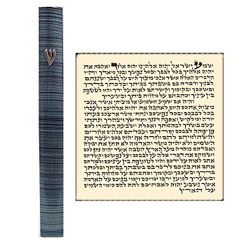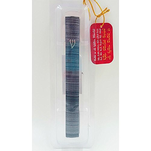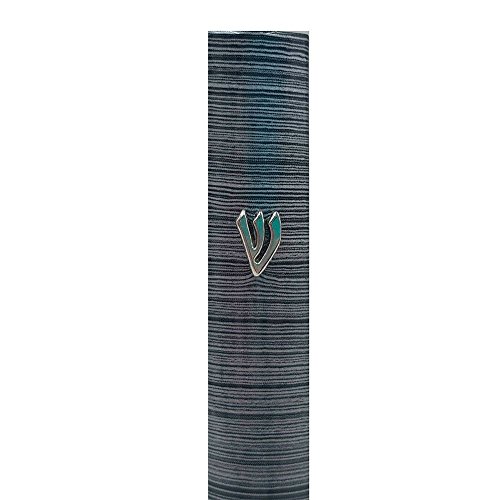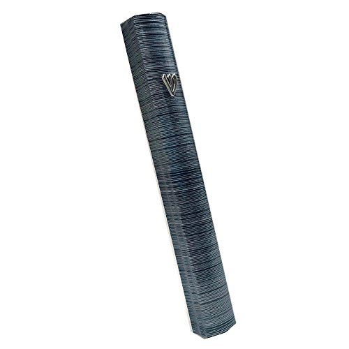 Aluminum Jewish MEZUZAH CASE with Scroll 3D Metal Painted Gray Stripes Classic Israel Judaica Door Mezuza 5"
