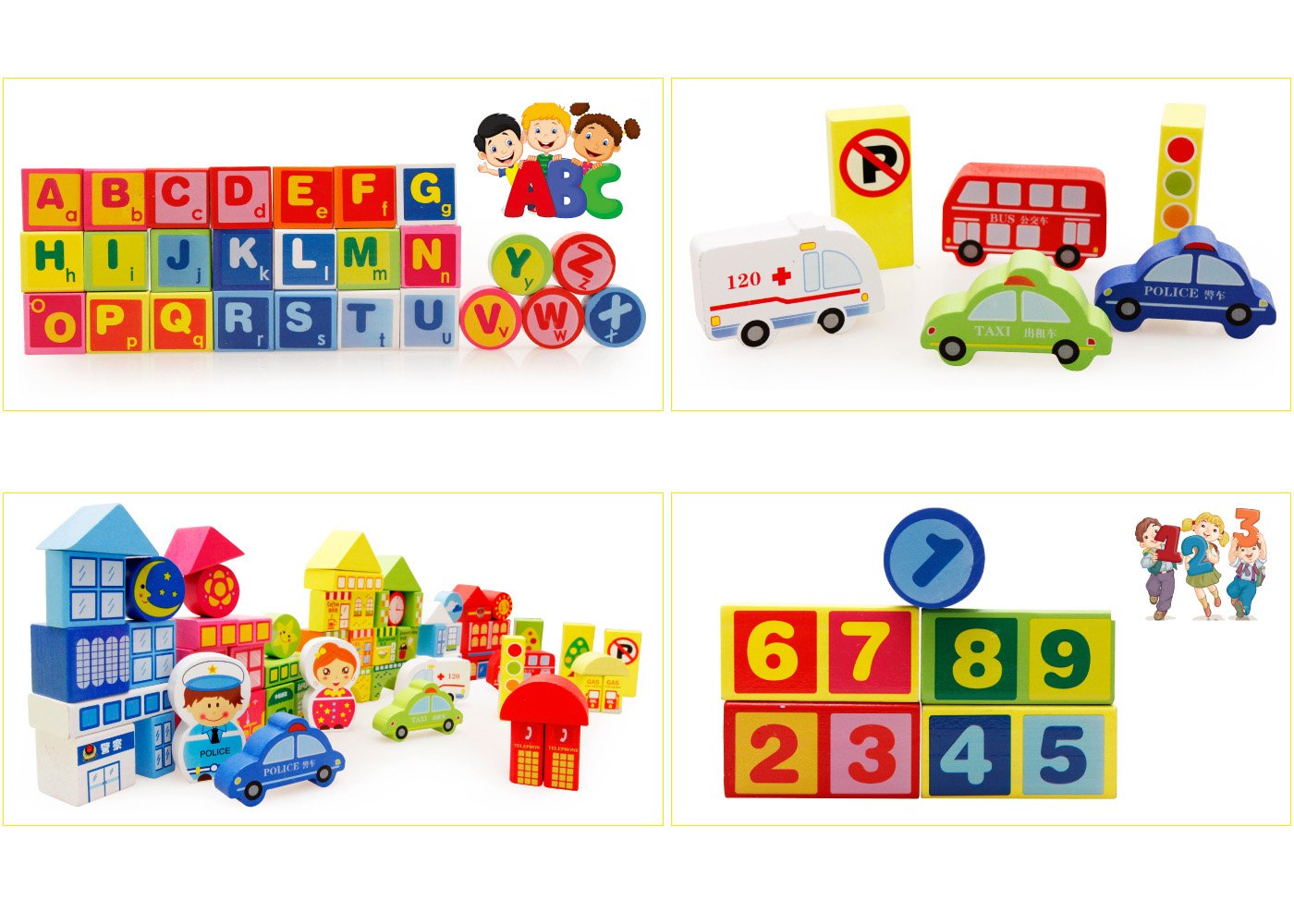 Blocks are printed on both sides and vivid images allow you to learn more knowledge while cultivating children's imagination, study abilities, creativity, spatial thinking ability, language ability and playing.