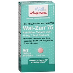 Studio : Walgreens Publisher : Walgreens Binding : Health and Beauty Product Description Non-Prescription Strength Ranitidine Tablets USP, 75 mg Acid Reducer Relieves heartburn associated with acid indigestion sour stomach 2 Prevents heartburn associated with acid indigestion sour stomach brought on by eating or drinking certain foods beverages This product is sodium and sugar free. Questions? 100% Satisfaction guaranteed with all Walgreens products or your money back. 0