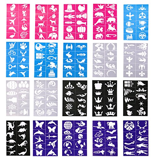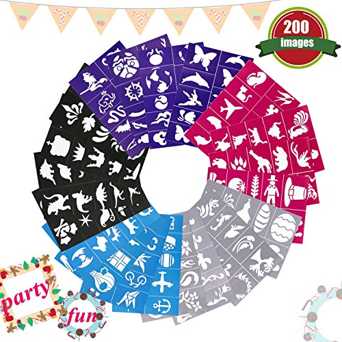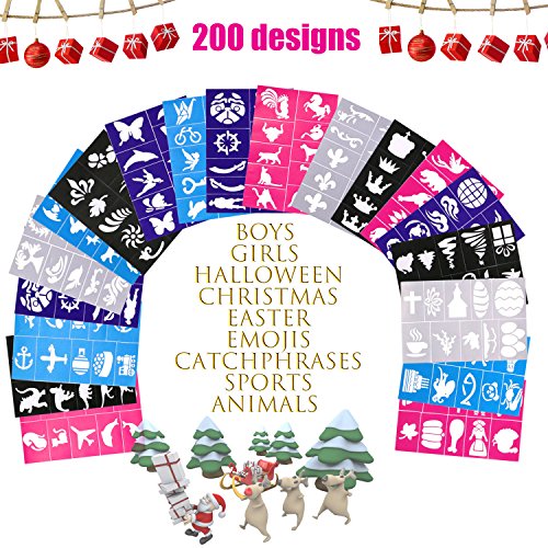 Buluri 200 Pack Face Paint Stencils, Body Paint Stencils, Face Paint Kit for Boys & Girls, Non-Toxic Reusable Adhesive Face Painting Supplies for Birthday Party, Christmas, Halloween, Carnivals
