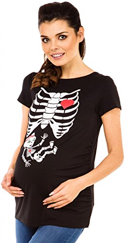 Cute maternity top / t-shirt with short sleeves and funny print - ribcage and baby girl x-ray.