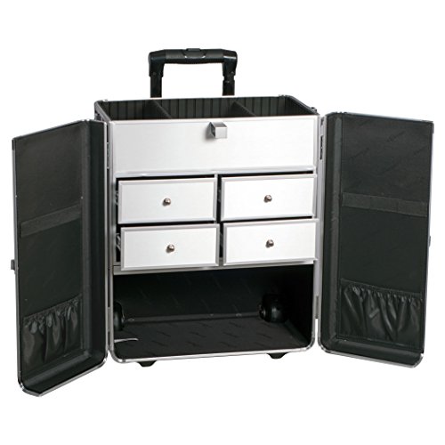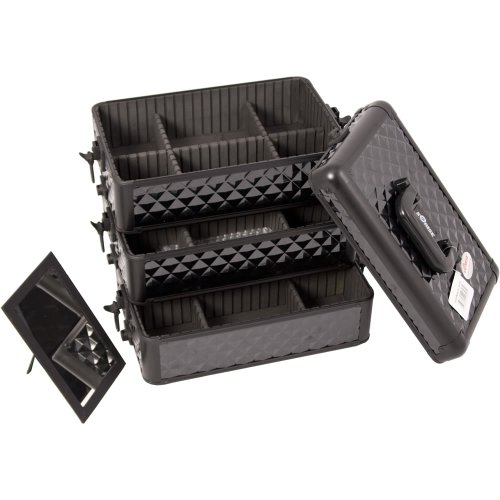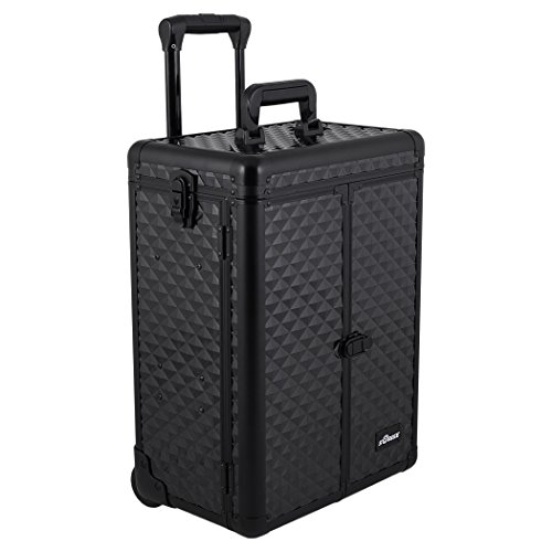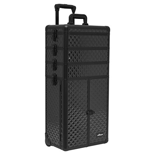 SUNRISE Makeup Case on Wheels 4 in 1 Professional Organizer I3365, 3 Stackable Trays and 4 Drawers, Locking with Mirror, Black Diamond