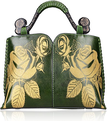 -. Brand : PIJUSHI -. Color : Red -. Department : womens -. Feature : 100% leather : Gold Rose Fine Cowhide leather with wood handles / Lining: fabric / Top Zip closure / Big Size: L 14.5" x H 12.5" x W 5" with 4" high handles Small Size: L 14"x H 10.6"x W5" / 45" removable & adjustable shoulder strap drop -. PackageQuantity : 1 -. ProductGroup : Shoes -. ProductTypeName : HANDBAG -. Title : Pijushi Designer Floral Handbag Women's Genuine Leather Tote Flower Purses 6028