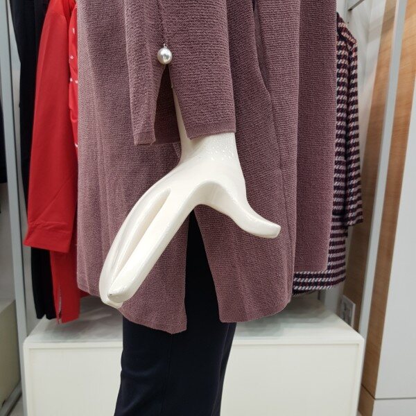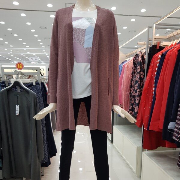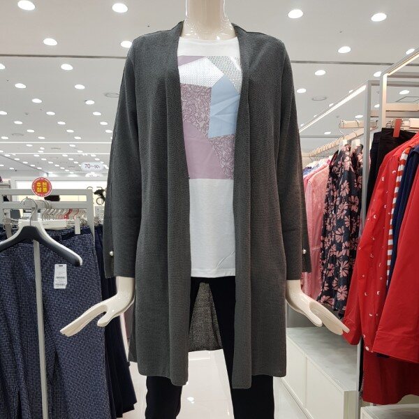 걸치는 스타일의 롱 가디건으로 간절기 아우터로 멋스럽게 연출 가능하며 소맷단의 진주 단추 장식이 트렌디한 아이템.