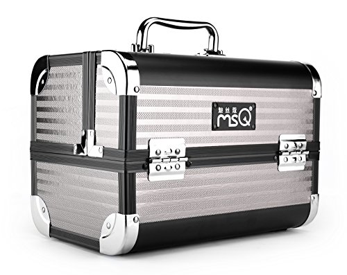 MSQ Combination Lock Makeup Train Case Jewelry Organizer 4 Trays 10" Professional Waterproof Cosmetic Box