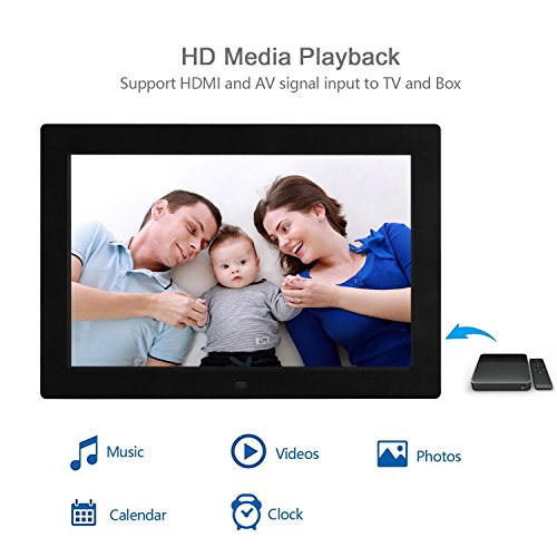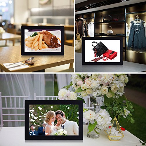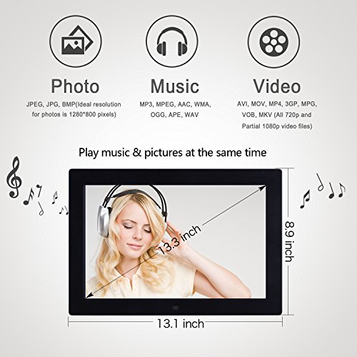 High resolution (1280*800), this screen offers the viewer a clear and distinct display of all the intricate details encompassed in each picture. It can be used as a MP3/ MP4/ E-book/ calendar or a clock. Support HDMI and USB port, can connect with computer, U flash disk and hard disk. Reads Memory card max to 32GB. Support boot automatically play. Play videos and music with built-in stereo speakers and headphone output jack. Control method of manual mode, remote control and auto-play. With no required setup and no software to install. Display your favorite photos in automatic slideshow mode. With a remote control for easy use.
