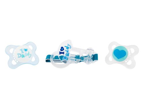 - Title : MAM Love and Affection Daddy Silicone Pacifier with Clip, Blue, 0-6 Months, 2-Count
