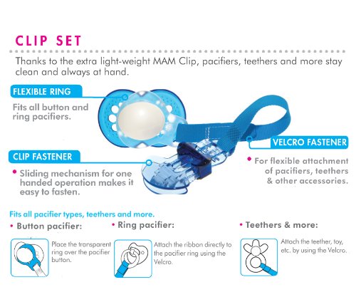 - Feature : Special value pack includes two BPA-free pacifiers and one matching clip / Curved shield allows the pacifier to sit comfortably on baby's face / MAM Ultra Soft Silicone Nipple stays comfortably in baby's mouth due to the anti-slip texture / Symmetrical nipple ideal for baby's jaw development / Clip helps keep pacifiers clean when not in use and close at hand