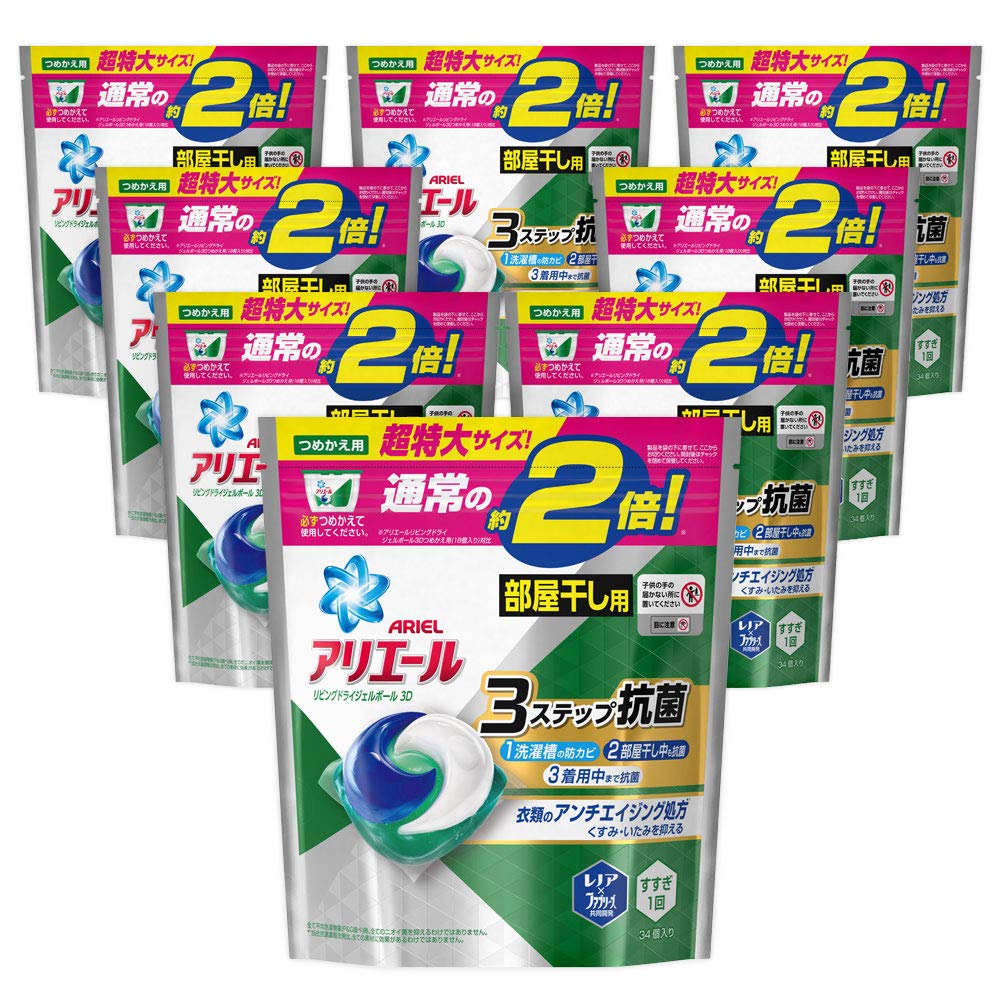 商品紹介 洗濯用合成洗剤 通常の約2倍! 超特大サイズ! 部屋干し用 3ステップ抗菌処方! 1 洗濯槽の防カビ 2 部屋干し中も抗菌 3 着用中まで抗菌 衣類のアンチエイジング処方*1 くすみ・いたみを抑える 漂白剤なしでも一発洗浄*2 すすぎ1回 洗濯洗剤 全て平均洗濯物量(P&G調べ)時。 全てのニオイ菌を抑えるわけではありません。 *1当社抗菌濃縮洗剤比。全ての素材に効果があるわけではありません。 *22017年8月 P&G調べ。汚れの度合いにより、汚れ落ちの程度は異なります。 使用上の注意 子供の手の届かない所に置いてください 目に注意 子供に注意 目に注意 濡れた手で触らない 切らない破らない 洗剤投入口には入れない (製品がつまり、水があふれる恐れがあります。) 使用上の注意 ●これは食べ物ではありません。 ●子供やペットの手の届く所に置かない。 ●口に入れたり、飲み込んだりしない。 ●認知症の方などの誤飲を防ぐため、置き場所に注意する。 ●用途以外に使わない。 ●下洗いや手洗い用におすすめしません。 ●製品を強く押したり、長時間触らない。 ●製品が破れて原液が洗濯機のフタについたときは、水ですぐふき取る。 ●小さくして捨てやすい、やわらかい素材を使用しています。開封前の破損や液漏れに注意してお取り扱いください。 ●切り口や角で手を切らないようご注意ください。 ●パッケージ裏面中央の小さな穴は外袋の膨張を防ぐための通気孔です。製品およびパッケージの品質に問題はございませんので、ご安心ください。 応急処置 ●万一飲み込んだ場合は、吐かせず、水を飲ませるなどの処置をして、医師に相談する。●目に入った場合は、こすらずにすぐ水で15分洗い流して、医師に相談する。●万一製品が皮膚や衣類に残った場合は、皮膚は水でよく洗い、衣類はぬるま湯にしばらくつけ置きしもみ洗いをしてください。