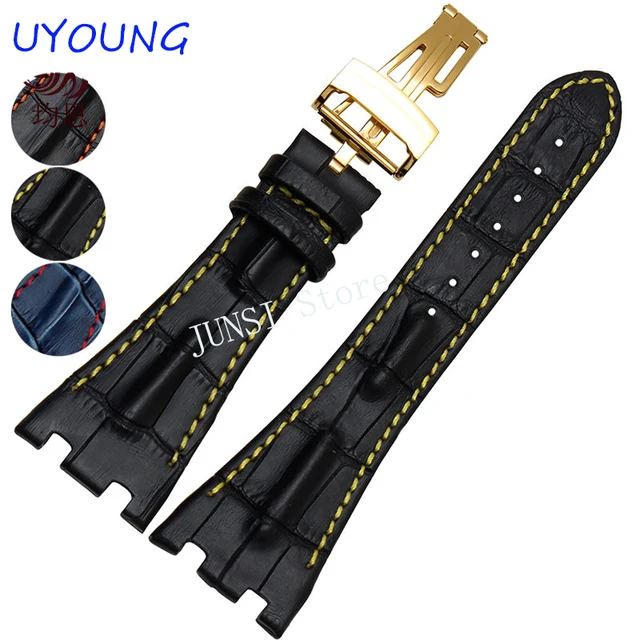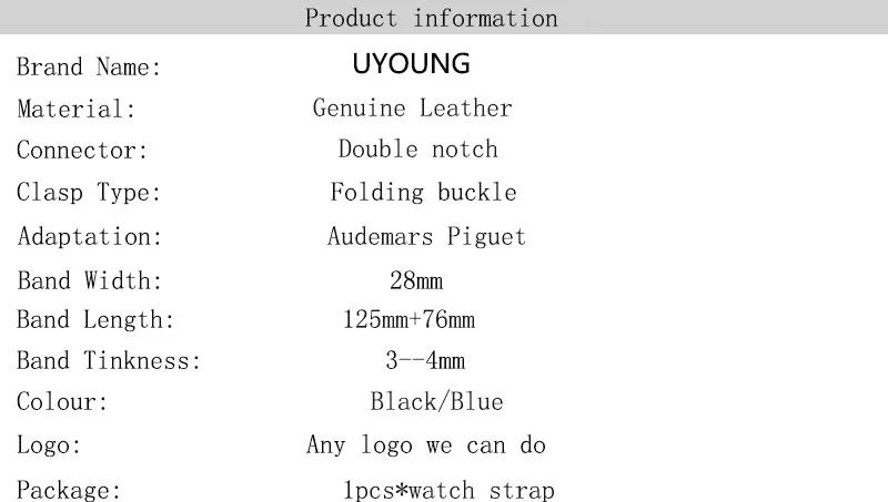 Uyoung 손목 시계 품질 정품 가죽 시계 밴드 + 접이식 버클 28 미리메터 망 시계 스트랩
