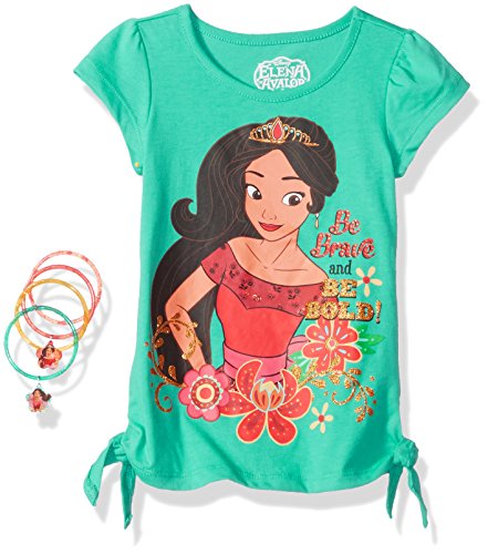 Disney Little Girls' 2 Piece Elena Tee Shirt and Hair accessories, Green, 10/12