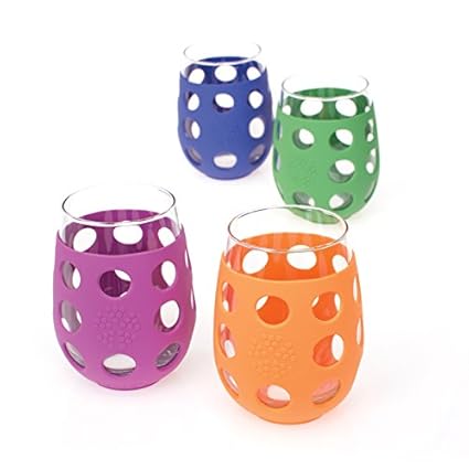 [Product Information]- Multi-colored set of four, 17-ounce large wine glasses with protective silicone sleeves