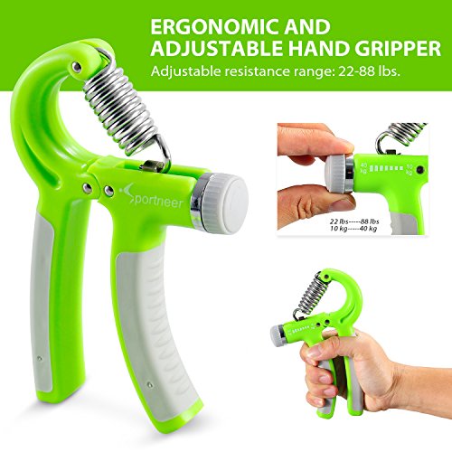 Studio : Sportneer Publisher : Sportneer Binding : Misc. Product Description Have you been looking for the best, portable adjustable hand grips for your grip exercises? You are at the right address! This best Hand Strengthener Set will help you build and tighten your hands, fingers, wrist, and forearms muscles. As it is small, exquisite, lightweight and portable, you can carry it with you to exercise anytime. Suitable for sports enthusiasts, it can be used indifferent kinds of sports and games such as golf, tennis, mountain climbing, weightlifting and much more! Another beneficial function of this hand grip is helping quick recovery from hand surgery! Now you know the greatest helper to solve your problems and strengthen your hands, fingers for sports or instrument playing! Package Contents: 1× Hand Gripper 1× Finger Stretcher Band 1× Hand Exerciser 1× Squishy Ball 1× Grip Ring 1× User Manual 0