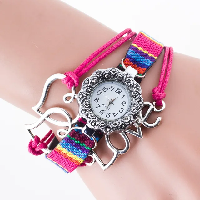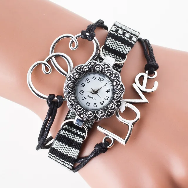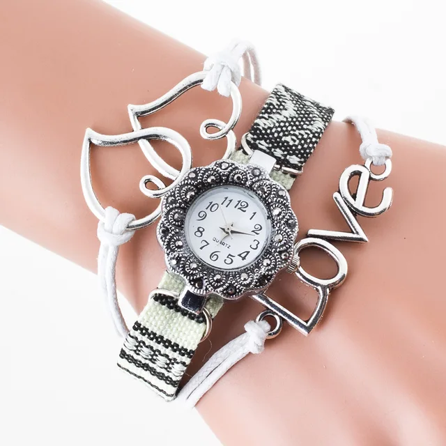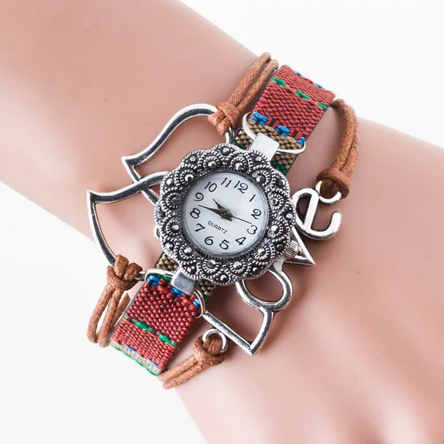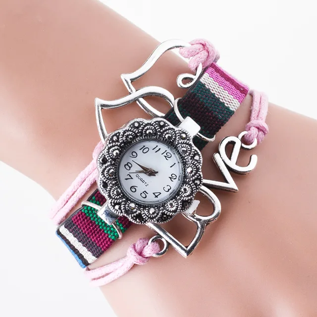 | [해외] Cindiry 더블 사랑 하트 손목 시계 여성 팔찌 시계 레저 여성 로프 직조 꽃 석영 레트로 빈티지 시계 P0.11 |