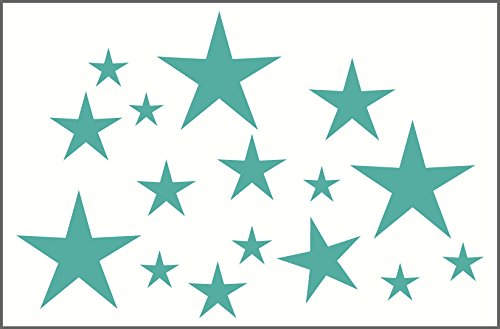 Wall Decor Plus More WDPM209 Variety Star Wall Vinyl Sticker Decal 16 Pc 2In to 8In Peel-N-Stick By, Turquoise