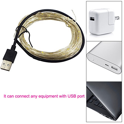 - USB Power: USB powered for application, free from the hassle of plugging to fixture and the eco-unfriendly batteries. You can light up the LED string lights with your power bank or laptop and use it almost anywhere you like such as camping, indoor, bedroom, party, wedding, cafe, commercial decoration etc