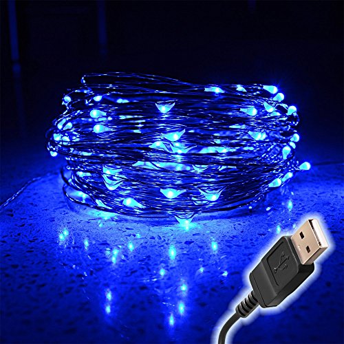 String Lights LED Lights Fairy Lights Xmas lights Outdoor lights -100 Leds, 33 feet Copper Wire USB Connector with Controller, Blue