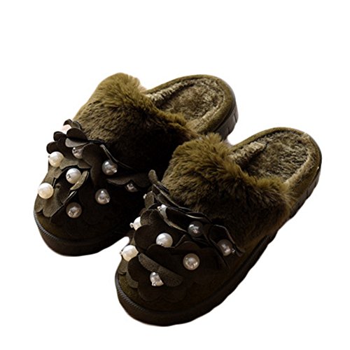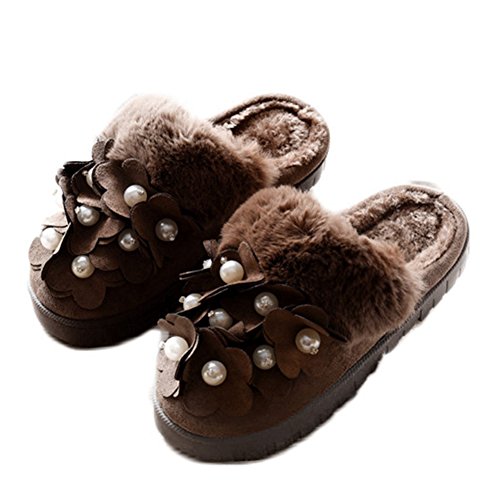 (CYBLING)/Women's/Slippers/DIRECT FROM USA/CYBLING Fashion Flowers Pearl Platform Slipper Fur Lined Waterproof For Women