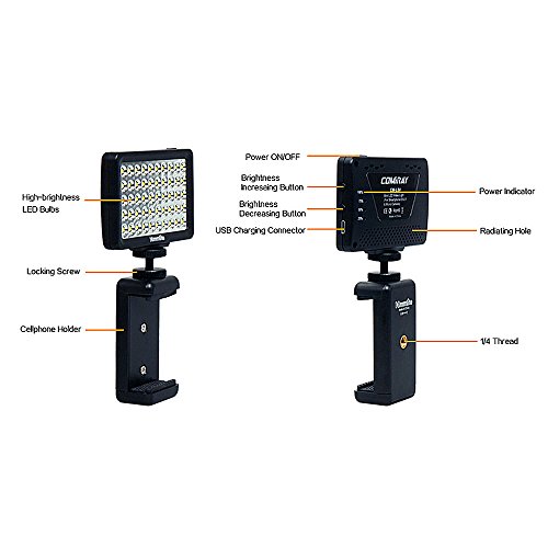 LED Video Light Commlite CM-L50II Dimmable 50 LED Ultra High Power Panel video light Portable Multi-functional Mini for Micro Camera Sony Camera and smartphone(Black)