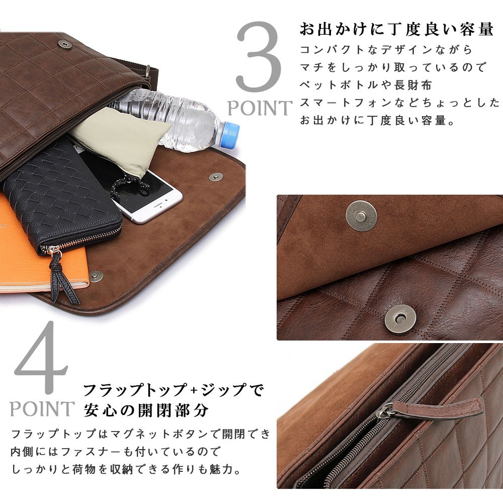 | 商品名 | ショルダーバッグ メンズ 斜め掛け 合皮 軽量 革 レザー 無地 クラッチバッグ ポシェット パーティーバッグ カバン ユニセックス 肩掛け |