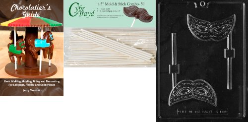 Cybrtrayd 'Mask Lolly' Miscellaneous Chocolate Candy Mold with 50 4.5-Inch Lollipop Sticks and Chocolatier's Guide