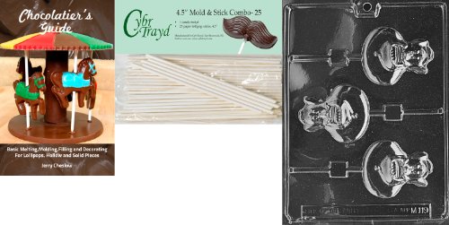 Cybrtrayd 'Genie Lolly' Miscellaneous Chocolate Candy Mold with 25 4.5-Inch Lollipop Sticks and Chocolatier's Guide