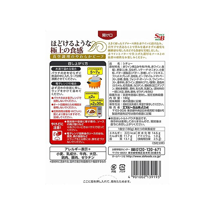 원본상품명: S&B グランスペシャリテ ほどけるビ?フシチュ?濃厚赤ワイン仕立て 180g×5個