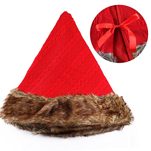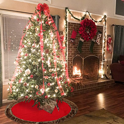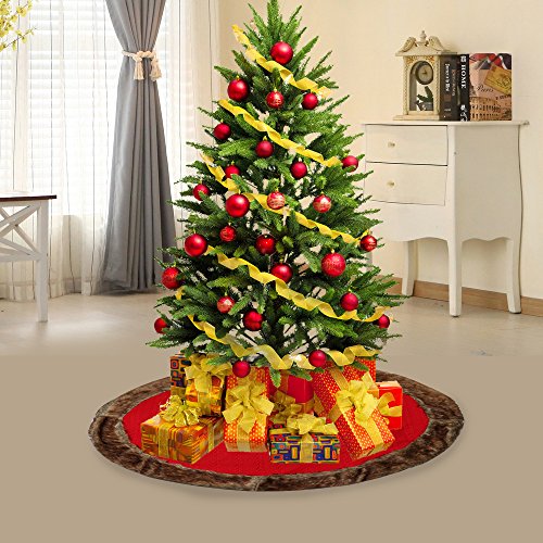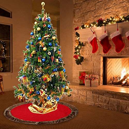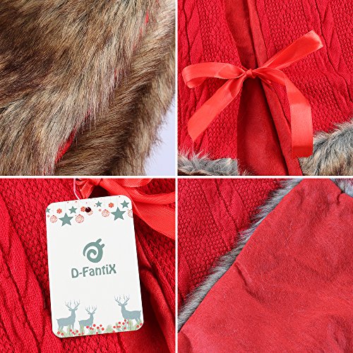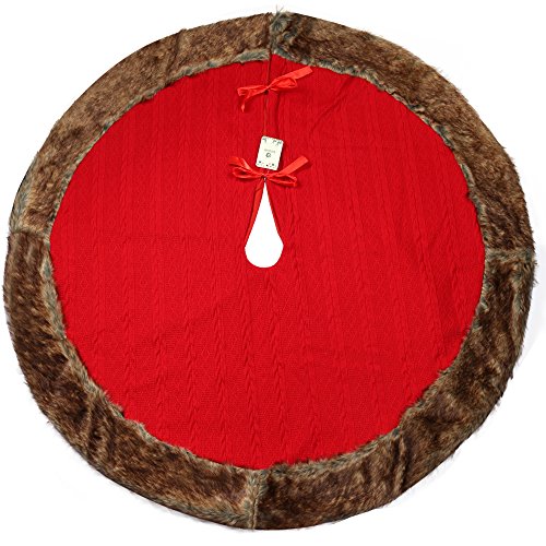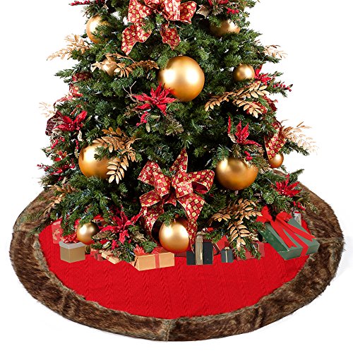 D-FantiX Large Christmas Tree Skirt 48 Inches Knitted Wool Tree Skirts Red with Brown Trim Holiday Christmas Decorations
