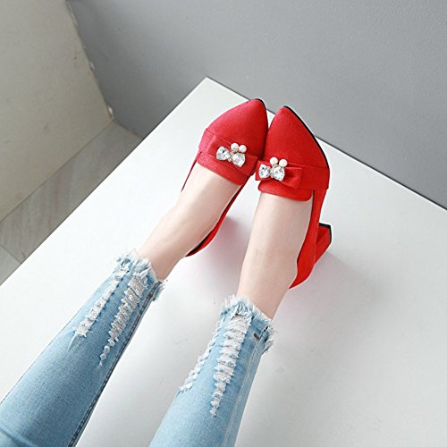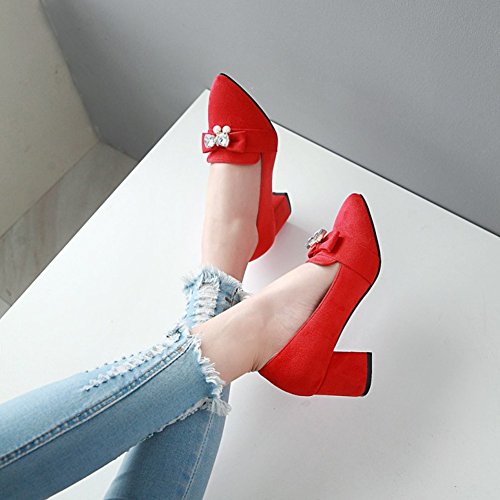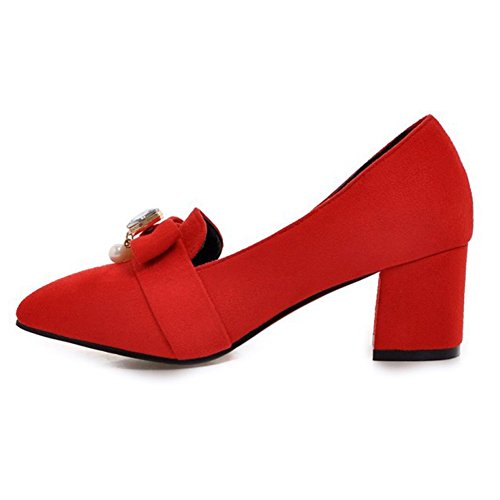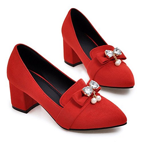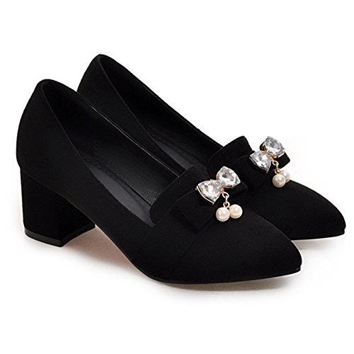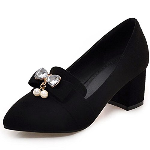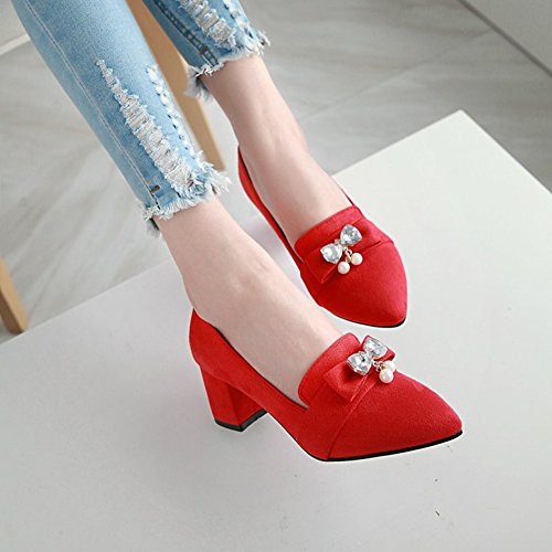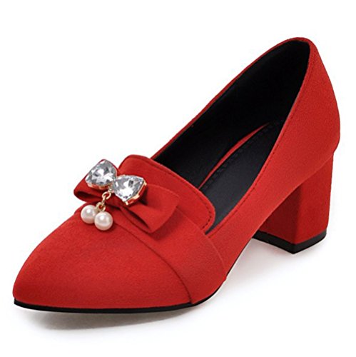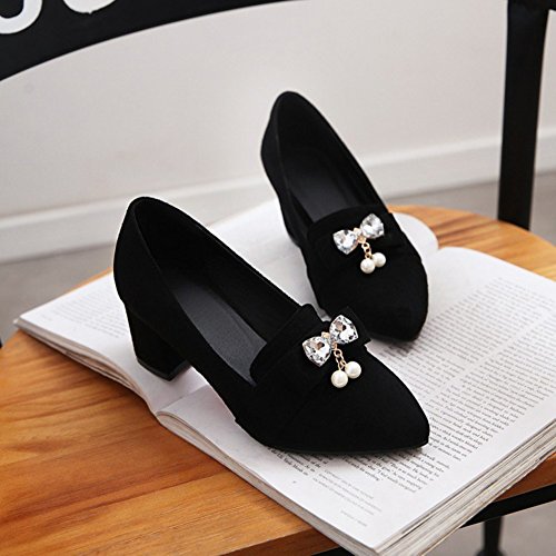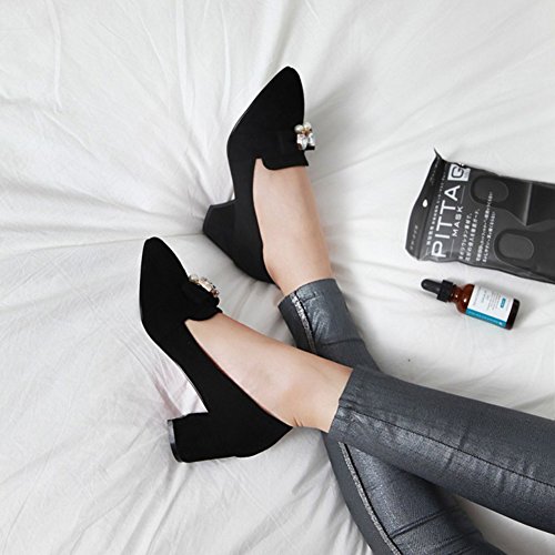 Binding : Apparel Product Description These shoes feature the pointed toe, low cut form, faux suede upper and slip on design which will keep your appearance trendy and retro when you wear it. Finished with a mid block heel, the shoes provide you premium feeling when you walk with them. Even if you wear the shoes all day, you won't feel too tired. Because the arch fits the sole of foot perfectly, which can reduce your weariness. Besides, the height of the shoes can balance the proportion of your body faultlessly, also makes you look tall and slim. These shoes are wonderful choice for those young ladies who are in search of a pair of stylish and comfy shoes in this season. They definitely worth your possession. Come and take them to your home! 0