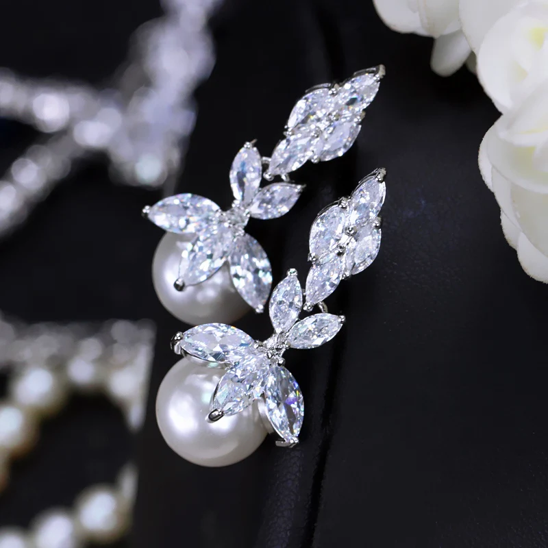 Earrings shape:Flower Pearl Drop