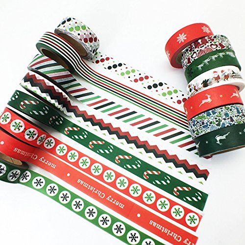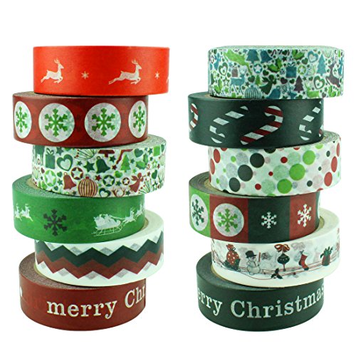 12 Rolls Christmas Thanksgiving Holiday Washi Tape Set, Snowflake Tape, DIY Scrapbooking Decorative Tape, Masking Tape, Planner Tape, Craft Gift Decoration Tape Stickers, Red Green White