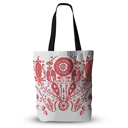 KESS InHouse Luvprintz "Flower" Red White Everything Tote Bag, 18" x 18", Multicolor