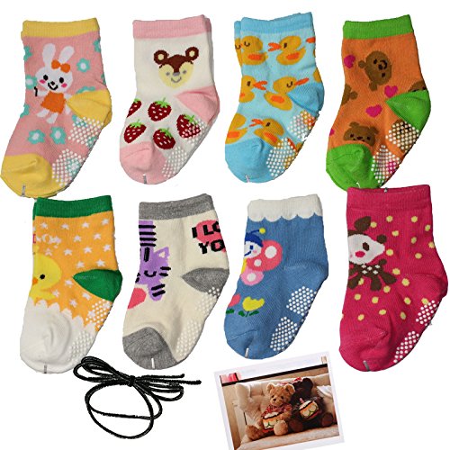 Baby Non-skid Baby Toddler Anti Slip Shoe Socks Material: 78% cotton,17% polyester, 5% spandex Size: To fit babies 12-36 Months, Length 9-12cm/3.54-4.68inch Tube length:7-9cm/2.73-3.51 inch width:7cm/2.73 inch Function: anti slip sock,breathable, absorb sweat, deodorization Suit for Unisex babys(baby boys baby girls) For season: Spring, summer ,autumn and winter. Cute animal pattern design with fresh colors. High quality can use for a long time, no matter hand wash or machine washable also dryer safe.Breathable, absorb sweat, deodorization, Give your baby a safe, comfortable and healthy childhood.unisex style (Either boy or girl can use) also making sure different color washable and dryer safe Package:6 pairs different Anti Slip Non Skid sock 1pc hair rope 1pc gift card Customer service: