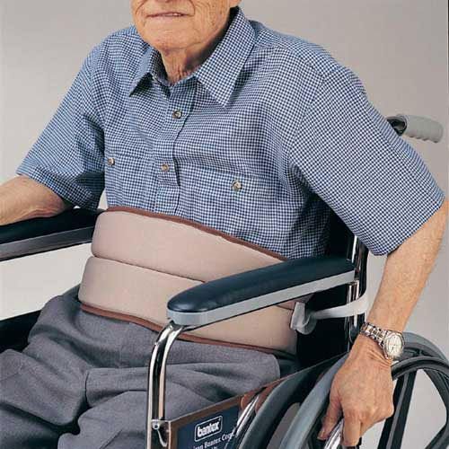 Product Description Soft and secure foam-padded belt. 6" wide belt can be used in wheelchair, geri-chair or bed. Tie closure fastens behind the chair, out of residen't reach 0