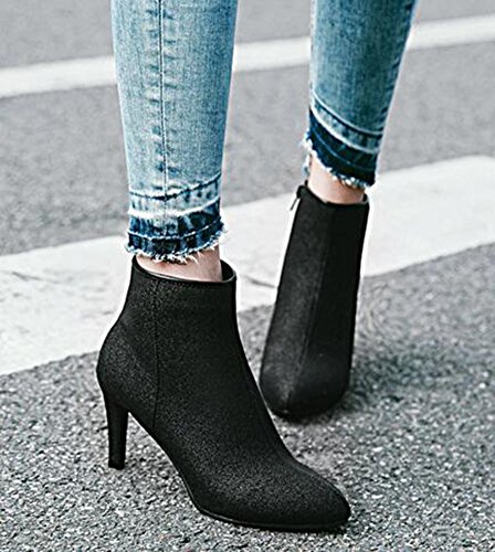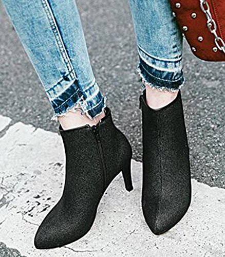 Binding : Apparel Product Description When you walk in the street or take part in some special occasions, do you want to be charming and attractive among others? Or are you tired of wearing the same booties with others? How could you miss these trendy outfits? This pair of comfy boots has zipper decorated on the side. You will like their antiskid, durable and waterproof design. With the safe stiletto heel, you could be at ease when you dress in the comfortable shoes. Many people are in favor of its casual, fashion and elegant style with the closed pointy toe, sequined, ankle high and solid color. In the fall and coming winter, it's a must. They can fit any formal occasions, like wedding, party and club. With one, you will be the focus of fashion. Young ladies can buy one with your close friends. They are a wonderful gift. They are also easy-matching. Choose one suitable size so that it could fit you well. Welcome to our store. IDIFU?is?a?registered?trademark?in?the?USA. We always work on helping every fashion lady to be unique and different. As a trendsetter, YOU ARE DIFFERENT! 0