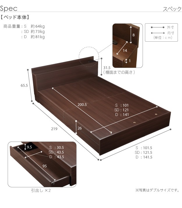 ●ダブル ロースタイル 省スペース スリムヘッドボード 収納 引き出し 2口コンセント コンセントカバー ウォッシャブル 洗える 手洗い 軽量 軽い ふとん